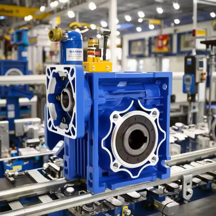 RV serisi sonsuz dişli redüktör, hafif ve hızlı ısı dağılımına sahip alüminyum alaşımlı bir kabuk kullanır. Alanı kısıtlı veya mobil ekipmanların kurulumu için uygundur. Kutunun yüzeyi anodize edilmiştir ve güçlü korozyon önleyici özelliğe sahiptir. Özellikle nemli ve tozlu ortamlar veya uzun süreli stabil çalışma gerektiren iş yerleri için uygundur. Solucan, yüksek kaliteli alaşımlı çelikten yapılmış, karbonlama söndürme ve hassas taşlama ile işlenmiş ve yüksek mukavemetli kalay bronz sonsuz çark ile eşleştirilmiştir. Yüksek meshleme doğruluğuna ve sessiz ve kararlı çalışmaya sahiptir. Sürekli yük koşullarında bile kararlı çıkışı koruyabilir ve ekipmanın genel ömrünü uzatabilir.